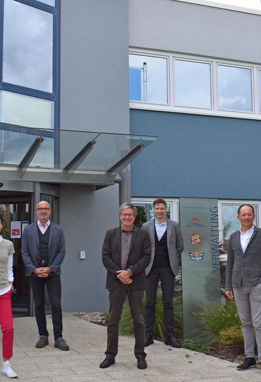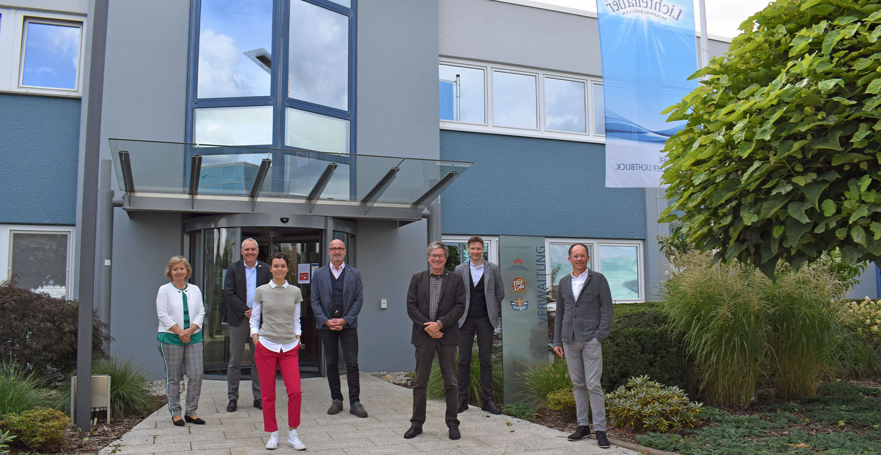 Bildunterschrift: Andrea Latendorf (Verwaltungsleiterin Lichtenauer Mineralquellen), Paul K. Korn (Geschäftsführer Lichtenauer Mineralquellen), Laura von Flemming (Nachhaltigkeitsbeauftragte HassiaGruppe), Uwe Grohmann (Betriebsleiter Technik Lichtenauer Mineralquellen), Oliver Brendle (Auditleiter TÜV Rheinland Cert), Ralf Radtke (Auditor TÜV Rheinland Cert), Lutz Am Ende (Betriebsleiter Nachhaltigkeit Lichtenauer Mineralquellen) (v.l.n.r.)