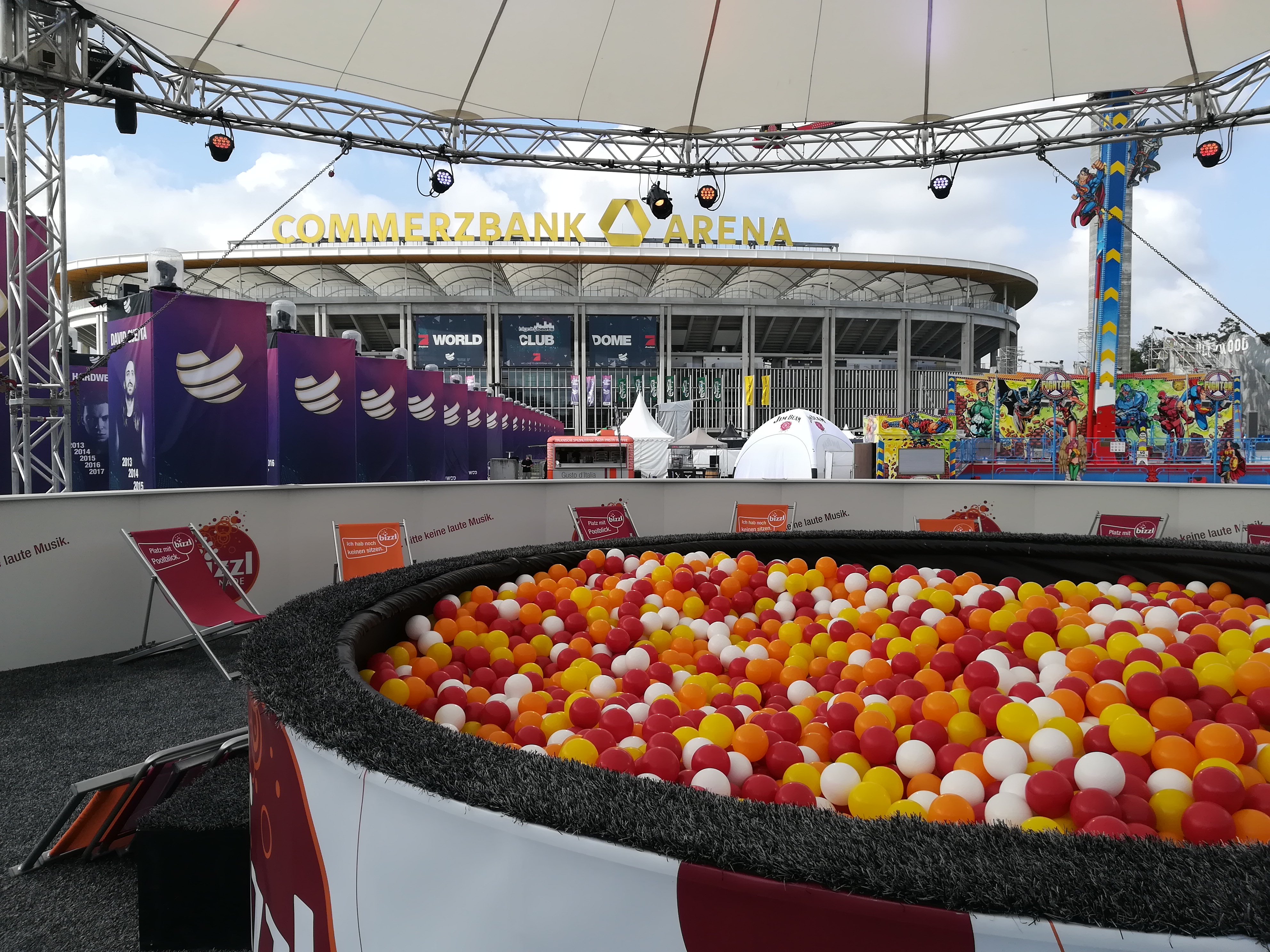 bizzl war dieses Jahr erstmals als Sponsor des gigantischen Festivals dabei. Neben dem Heli-Flug verloste bizzl auch zahlreiche heißbegehrte VIP-Tickets für das Clubwochenende. Vor Ort konnten sich die 160.000 Besucher mit bizzl Limos und Cocktails erfrischen. Vor allem der riesige „bizzl Bubble“ mit XXL-Bällebad, Chillout-Lounge und Bar sowie weit sichtbarem Magic Sky war ein Fan-Magnet!