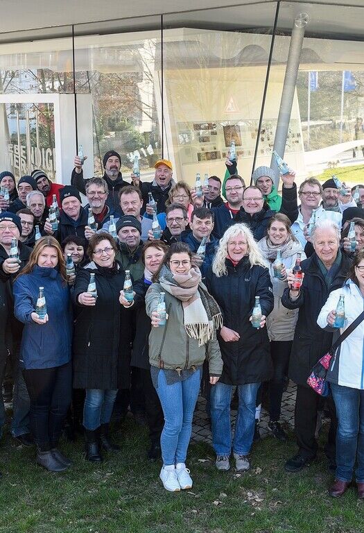 Rund 50 Bionade Mitarbeiter waren heute, Freitag,den 23. Februar, bei Hassia Mineralquellen in Bad Vilbel zu Gast. Nach einem herzlichen Willkommen ging es auf Entdeckungstour durch die Produktion, das Labor, die Logistik, Sortierung und das Hochregallager. Zum Abschluss ging es in den Kurpark von Bad Vilbel. Hier zeigte Günter Hinkel den Bionade-Mitarbeitern den Hassia Brunnentempel, das Römermosaik, das alte Produktionsgelände in der Innenstadt mit dem ehemaligen Stammhaus der Familie Hinkel.