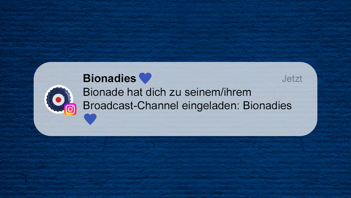 Bionadies? „Richtig. Das sind BIONADE Fans, die sich mit unserer Marke ganz besonders identifizieren, die tiefergehendes Interesse an exklusiven Informationen und Inhalten haben und von denen auch wir noch so einiges lernen können“, so Corinna Fuchs, Marketingleitern der Bionade GmbH. „Über unseren neuen Broadcast Channel auf Instagram können wir diese Zielgruppe jetzt ehrlich gut erreichen.“