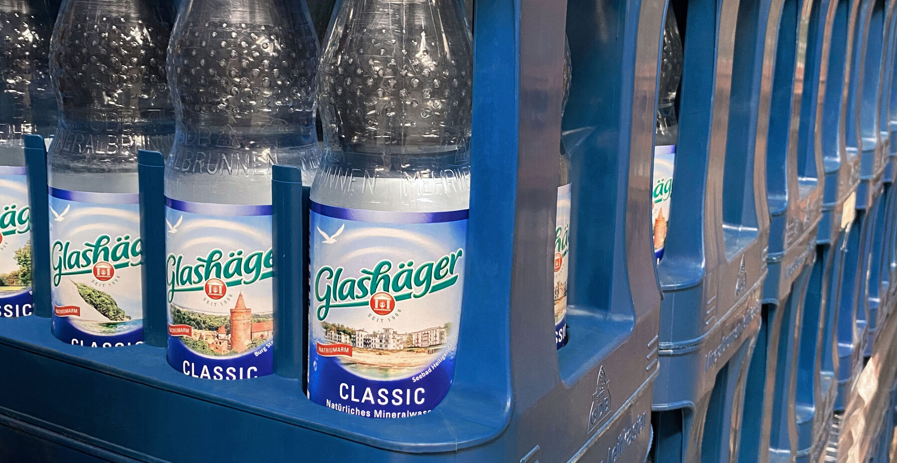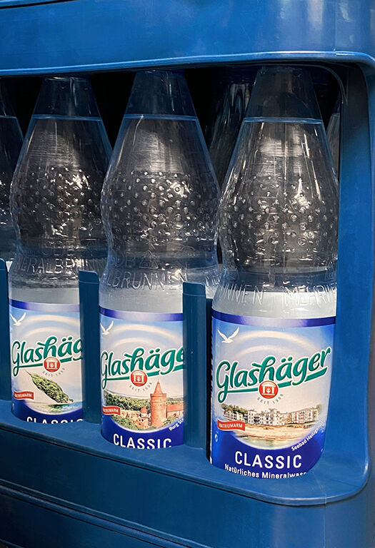 „Eine unserer größten Stärken ist unsere konsequent regionale Ausrichtung. Die Präferenz der Menschen für Produkte aus ihrer Heimat ist ein anhaltender Trend“, sagt Axel Schümann. Seit 2021 ist Glashägers Heimatverbundenheit auch auf den Mineralwasserflaschen erlebbar: Unter dem Motto „Unser Land genießen“ zeigten die Etiketten, prominent auf der Vorderseite, beliebte Orte in MV, wie den Warnemünder Leuchtturm, das Schweriner Schloss oder eines der vier Stadttore von Neubrandenburg. Die regionale Ausrichtung hat auch ökologische Vorteile. Die kurzen Transportwege sparen erheblich CO2 ein. Klimaschutz, u.a. durch eine überdurchschnittliche Mehrwegquote von fast 80 Prozent, gehört zum Selbstverständnis des Unternehmens. Zudem produziert der Standort seit 2020 klimaneutral.