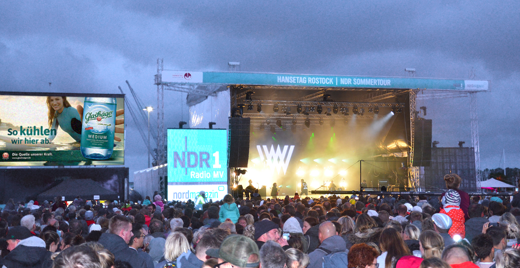Zu jedem Sommer an der Ostseeküste gehört auch die NDR Sommertour. Sie besucht auch in diesem Jahr wieder sechs Städte in Mecklenburg-Vorpommern. Weltbekannte Künstler wie Bonnie Tyler oder Chris Norman, aber auch national erfolgreiche Acts wie Wincent Weiss oder Sasha sorgen auf der NDR 1 Radio MV-Bühne für beste Stimmung bei kostenfreiem Eintritt. Der wegen des starken Windes etwas holprige Auftakt zur größten Party-Serie des Landes fand am vergangenen Freitag in Rostock im Rahmen des 800-jährigen Stadtjubiläums statt. Von Mitte Juni bis Anfang September werden über alle Standorte hinweg an die 72.000 Besucher erwartet.Die Marke Glashäger ist in diesem Jahr erstmals Getränkepartner dieses außergewöhnlichen Sommerhighlights. An allen gastronomischen Anlaufpunkten auf dem Veranstaltungsgelände können sich die Besucher exklusiv mit Glashäger Mineralwasser, Limonaden, Schorlen und vielen anderen Glashäger-Produkten erfrischen. Für alle Cola-Trinker und Cocktail-Mixer steht Vita-Cola bereit. Ergänzt wird der Glashäger-Auftritt durch crossmediale Maßnahmen, wie LED-Spots und gebrandete Stage-Wings vor Ort, vor allem aber durch Hörfunk, Fernsehen und Internet im Vor- und Umfeld der Veranstaltung. Das Besondere dabei: der derzeit erfolgreichste und üblicherweise vollständig werbefreie Radiosender im Land, NDR 1 Radio MV, schaltet in der Woche vor dem Event bis zu siebenmal am Tag ein Glashäger-Patronat. Damit konnte Glashäger den bisher einzigen weißen Fleck auf der Hörfunklandkarte in MV schließlich doch noch prominent werblich belegen. Außerdem werden im NDR Fernsehen in der populären Regionalsendung „Nordmagazin“ Liveberichte von jedem Event gezeigt. Das Gläserne Studio direkt neben der Bühne streamt zusätzlich die gesamte Veranstaltung unter www.ndr.de ins Internet und generiert auf diese Weise zahlreiche Onlinekontakte für die Marke.
