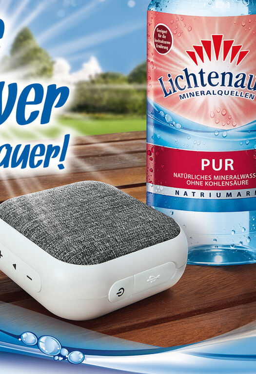 von zwölf Getränkekästen oder Sixpacks wird von Lichtenauer mit einem Bluetooth-Lautsprecher