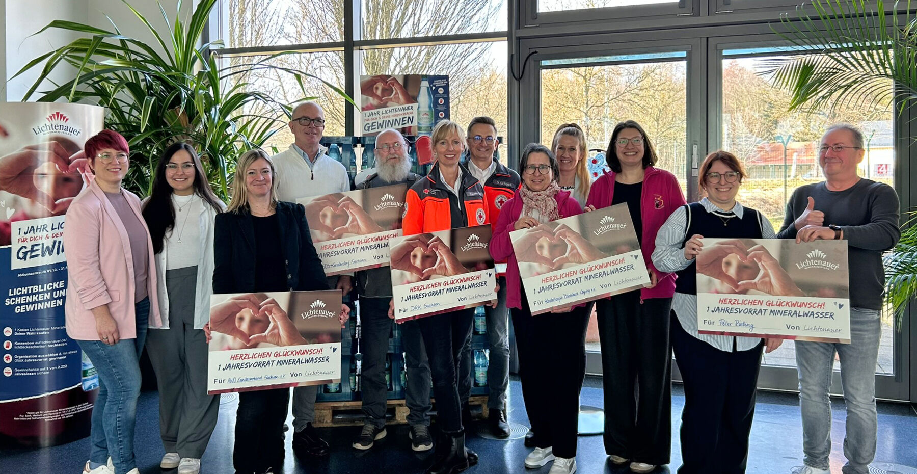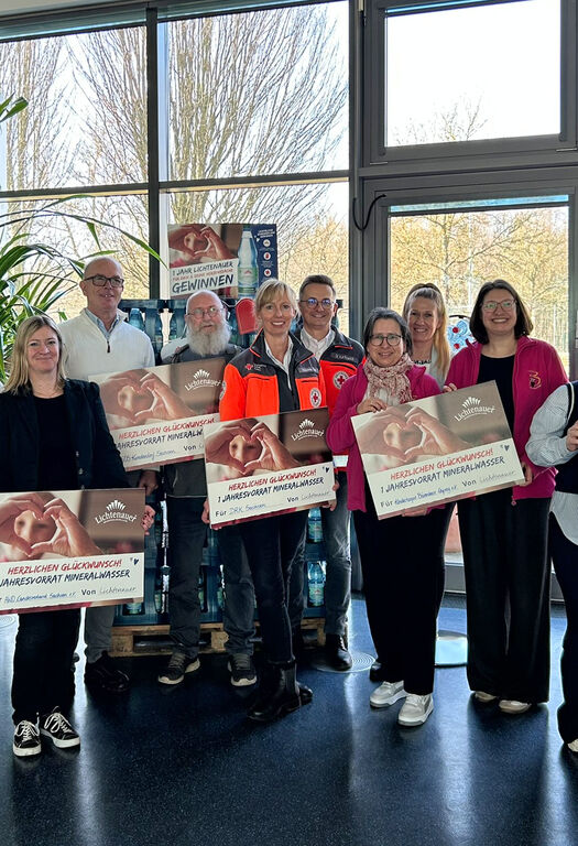 Vier wohltätige Organisationen aus Sachsen konnten heute einen symbolischen Scheck über einen Jahresvorrat Lichtenauer Mineralwasser in Empfang nehmen. Im Rahmen der Sozialaktion „Für dich & deine Herzenssache“ hatte die Marke Lichtenauer ihre Kunden im vergangenen Herbst aufgerufen, für ihre sächsische Lieblingsorganisation abzustimmen. Die Wahl der Teilnehmenden fiel auf das SOS-Kinderdorf Sachsen, den AWO Landesverband Sachsen e. V., das Deutsche Rote Kreuz in Sachsen und das Kinderhospiz Bärenherz Leipzig e. V. Deren Vertreterinnen und Vertreter kamen heute am Unternehmensstandort in Lichtenau zur feierlichen Abschlussveranstaltung mit Betriebsführung zusammen.