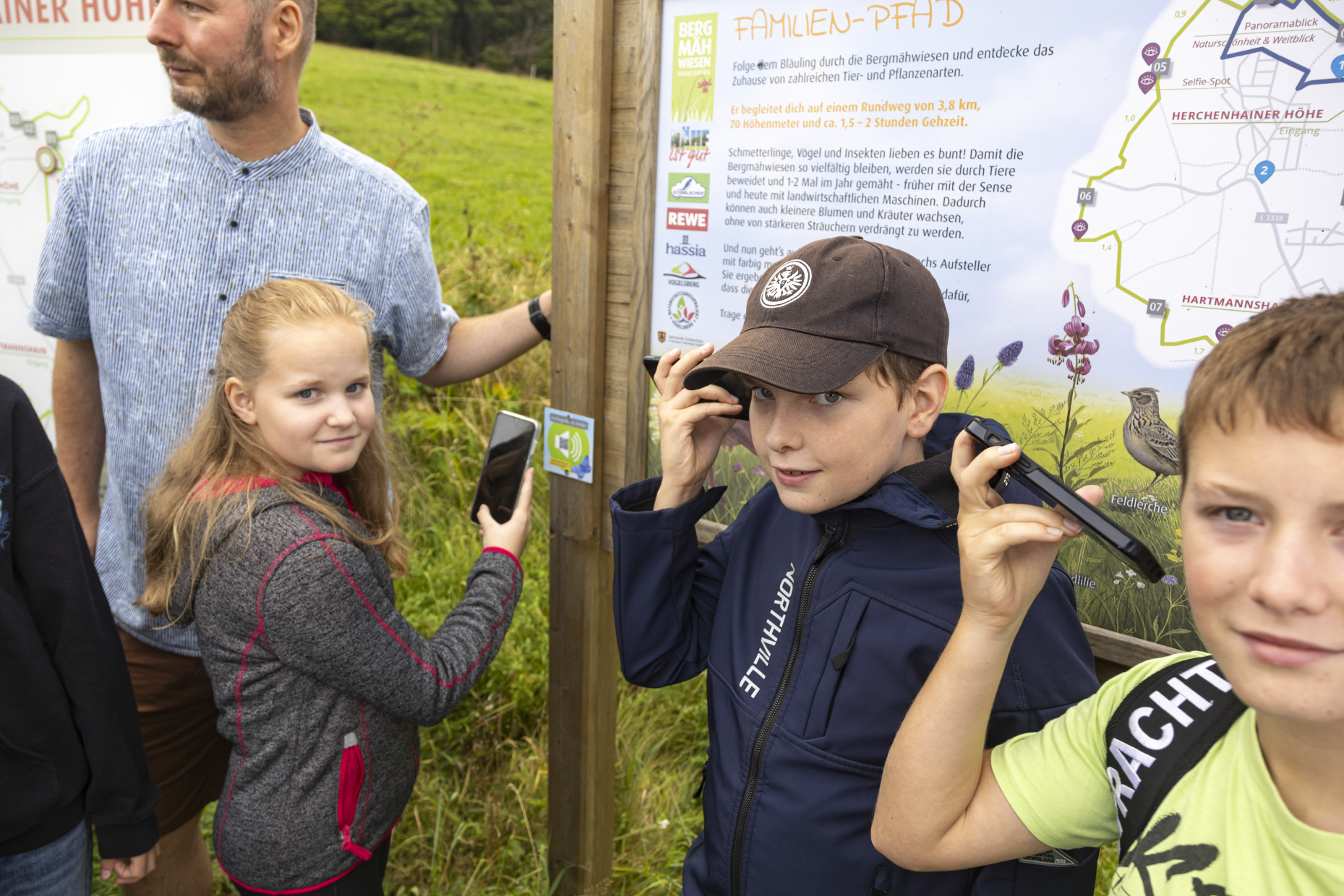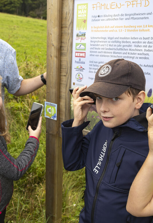 An der frischen Luft auf abenteuerlichen Pfaden durch Wald und Wiesen wandern und die besondere Artenvielfalt der Bergmähwiesen im Vogelsberg bei einer Kindergeschichte kennenlernen – eine herrliche Abwechslung zum normalen Unterricht im Klassenraum. Gleichzeitig erfahren Grundschulkinder bei einem Ausflug auf den Familien-Pfad in Grebenhain-Herchenhain jetzt über einen neuen Audioguide, der über Smartphones oder Bluetooth Lautsprecher abgerufen werden kann, wichtige Zusammenhänge für die Erhaltung des bedrohten Lebensraums. „Die Bergmähwiesen bestehen durch ein Zusammenspiel von Naturschutz und landwirtschaftlicher Nutzung, das sich nur mit großem Engagement der Bewirtschafter aufrechterhalten lässt,“ erklärte Staatssekretär Daniel Köfer vom Hessischen Landwirtschaftsministerium bei der Einweihung des neuen Audioguide für Kinder am Pfad. „Um diese Arbeit anzuerkennen und auch für die Zukunft ein Bewusstsein für die notwendigen Maßnahmen zum Schutz der Artenvielfalt zu fördern, ist es wichtig, Kinder bereits früh zu sensibilisieren,“ sagte er.