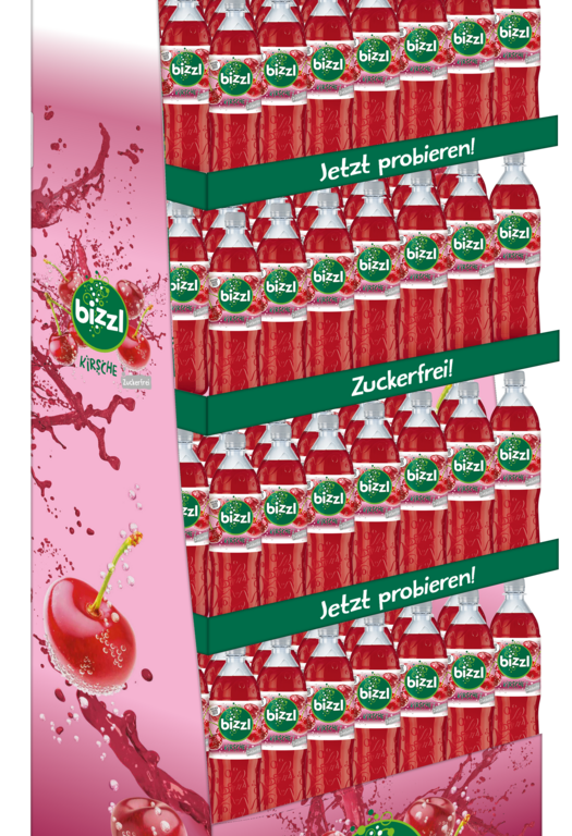 In einem zuvor durchgeführten Akzeptanztest durch isi Insights, einem der weltweit führenden Institute für sensorisches Marketing, lag bizzl Kirsche zuckerfrei signifikant über den Benchmarks im Zuspruch für Geschmack und Absatzpotenzial. Vertrieben wird das limitierte Sommerprodukt ausschließlich über ein neues Aktionsdisplay, das dem Handel ab Juni 2023 zur Verfügung steht. Dieses ist Teil der Strategie und wurde speziell für die Limited Edition entwickelt. „Mit einem aufmerksamkeitsstarken Aktionsdisplay am PoS schaffen wir unmittelbar Impulskäufe sowie neue Probierkontakte für die Marke bizzl und können gleichzeitig zusätzliche Umsätze für den Handel generieren“, sagt Andrea Kuhn, Brand Activation Managerin Hassia Mineralquellen. „Das attraktive Einzelflaschendisplay überzeugt durch deutlich überdurchschnittliche Werte in der Kaufabsicht und bietet damit auch einen echten Mehrwert für den Handel.“