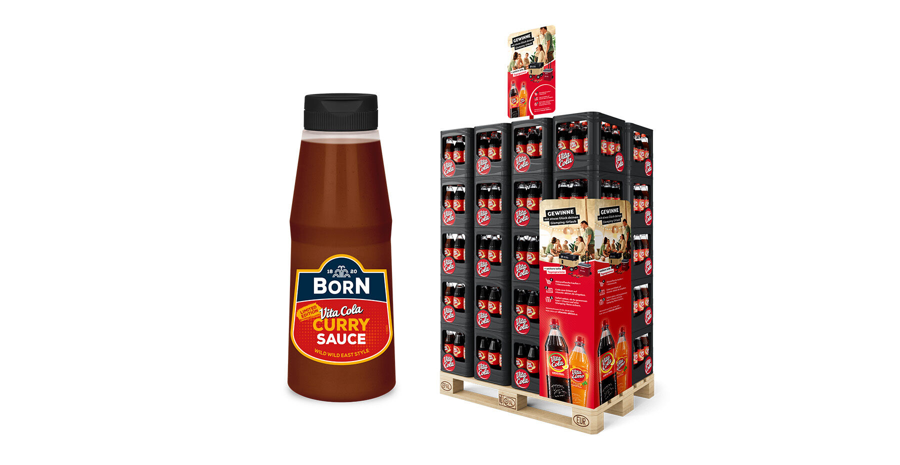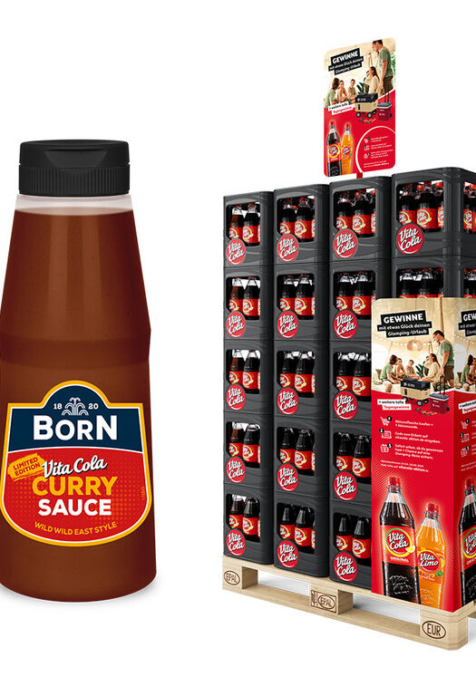 Zur zusätzlichen Verkaufsförderung hat VITA COLA in Kooperation mit BORN Senf & Feinkost aus Erfurt eine eigene VITA COLA Grillsauce entwickelt. Thomas Heinz, Geschäftsführer der Born Senf & Feinkost GmbH, war von dieser Produktidee sofort begeistert. „VITA COLA und BORN sind zwei Thüringer Originale. Unsere gemeinsame Limited Edition verfeinert übrigens jedes Grillgut, nicht nur die Thüringer Bratwurst“, betont Thomas Heinz. Wer im teilnehmenden Handel innerhalb des Aktionszeitraums einen Aktionskasten VITA COLA oder VITA LIMO kauft, bekommt eine 300 ml Flasche VITA COLA Curry Sauce gratis.