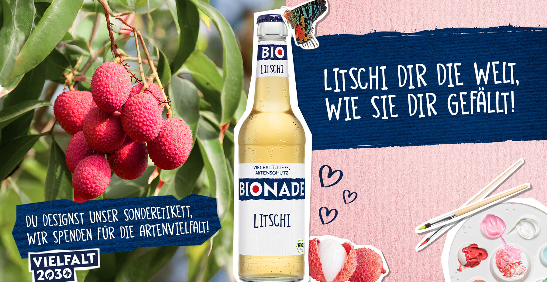 Wie in den vergangenen Jahren stehen bei der neuen BIONADE Sonderedition Kreativität und Nachhaltigkeit im Mittelpunkt. Unter dem Motto „Litschi dir die Welt, wie sie dir gefällt und designe für mehr Artenvielfalt!“ sucht der Bio-Pionier die fruchtigsten, vielfältigsten und aufmerksamkeitsstärksten Etiketten.