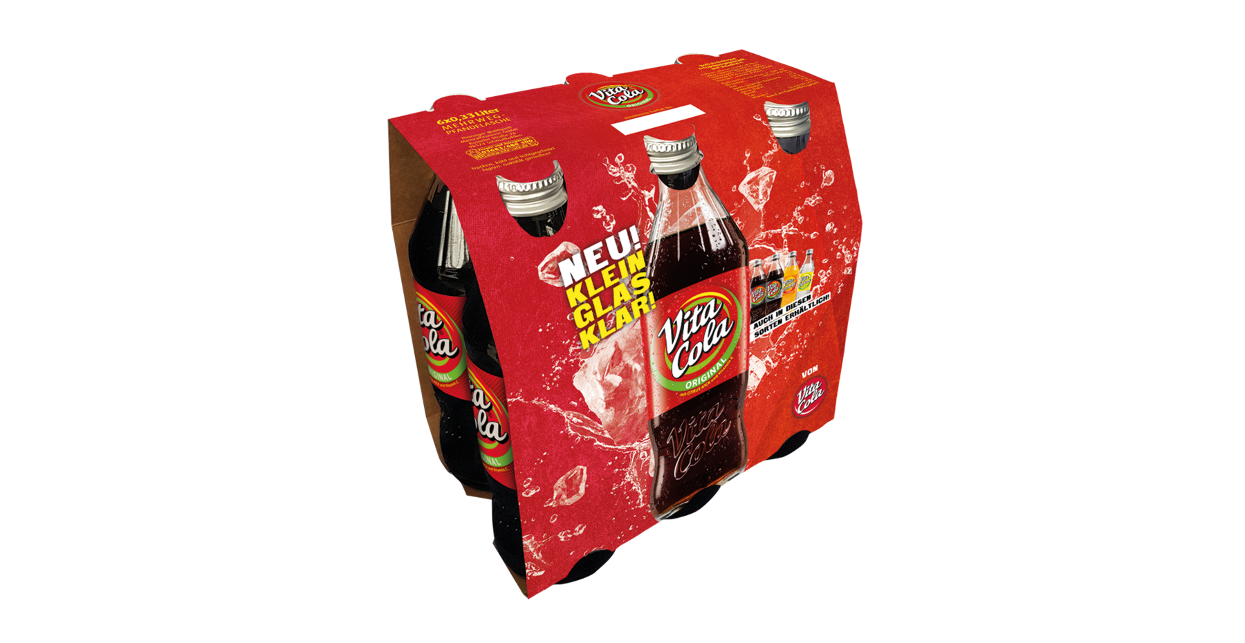 Schmalkalden/Lichtenau, 19. Februar 2021. VITA COLA erweitert das Gebindeangebot ihrer 0,33-l-Individual-Glasmehrwegflasche ab sofort um einen gefragten Sixpack. Die handliche, wiederverschließbare und umweltfreundliche Flasche im VITA COLA Markendesign hatte sich direkt mit ihrer Markteinführung 2020 als Umsatzgarant erwiesen. Beflügelt wurde ihr sofortiger Erfolgskurs von den ungebrochenen Trends zu Kleingebinden und Glasmehrwegflaschen. Drei Cola- und zwei Limonadensorten der Marke sind in der attraktiven Individualflasche erhältlich.