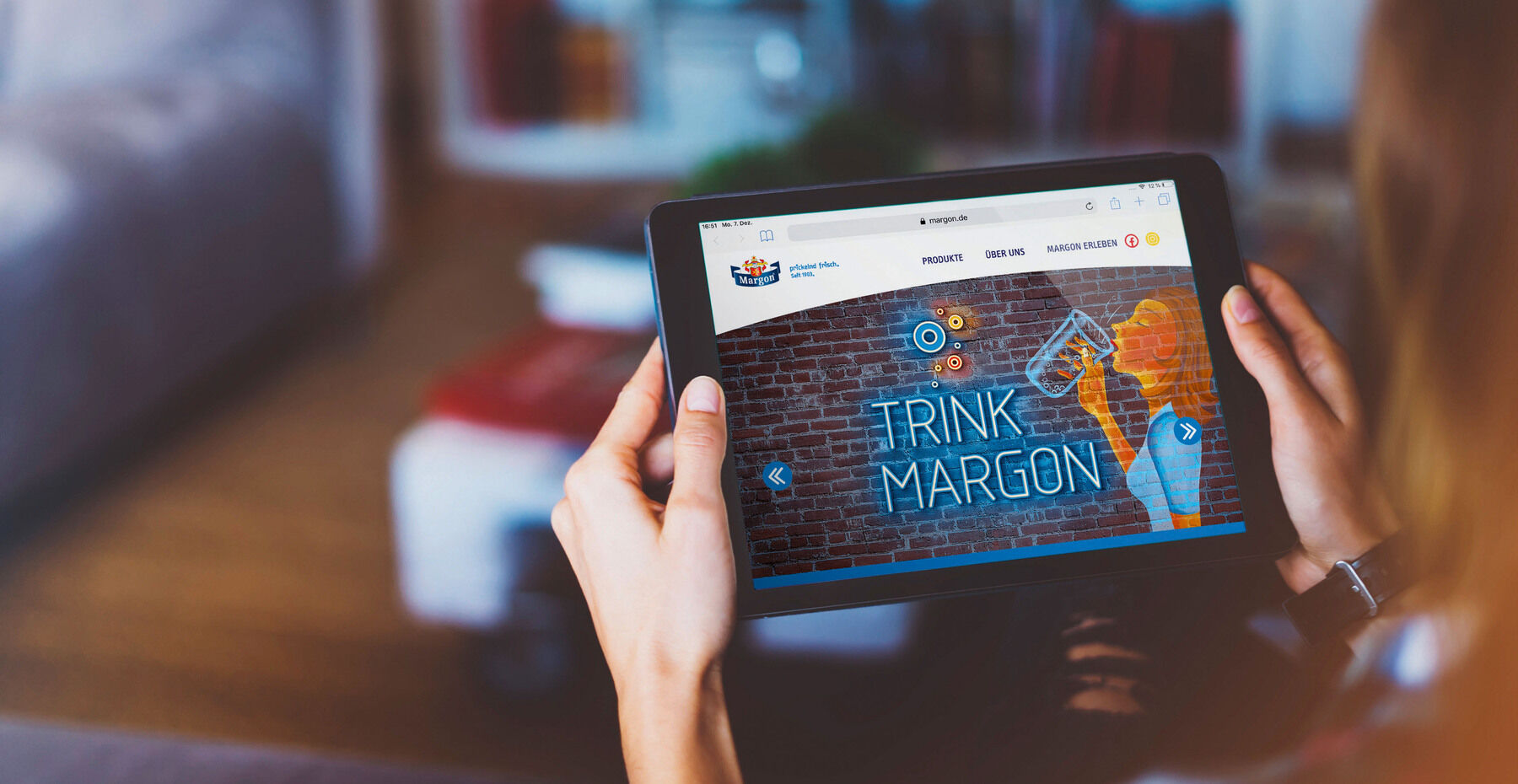 Der neue Internetauftritt ist stark an den Kampagnenduktus angelehnt. Denn bereits im vergangenen Jahr ist die sächsische Traditionsmarke mit einer neuen Marketing- und Kommunikationskampagne in den Sommer gestartet. Für die Inszenierung der beliebten Mineralwässer und Bittergetränke spielt Margon mit der eigenen Werbetradition und erzählt sie neu, modern und aufmerksamkeitsstark. Neon und Leuchtwerbung sind die Themen der aktuellen Kampagne, angelehnt an die legendäre Margon-Leuchtreklame „Trink Margonwasser – prickelnd frisch“, für die das regionale Mineralwasser in Sachsen bekannt ist und die seit den 50er Jahren die Stadtbilder der großen sächsischen Metropolen geprägt hat. Dieser Kampagnen-Gedanke wurde nun auch für die Online-Präsenz übernommen.