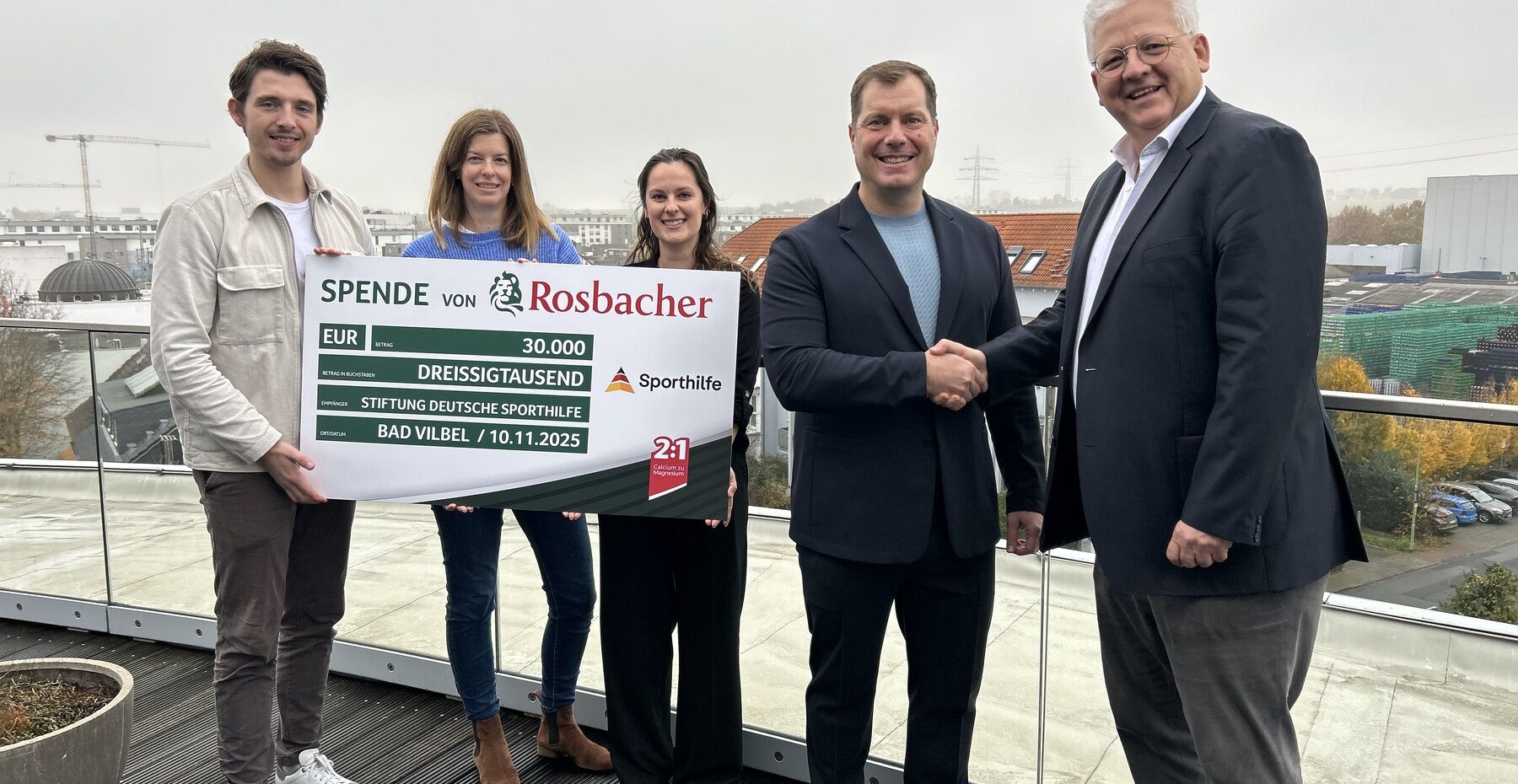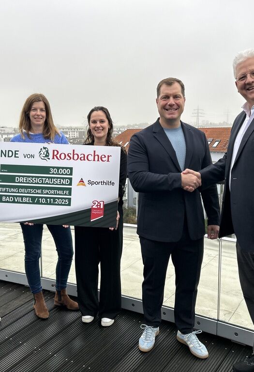 Bad Vilbel, 11. November 2025: Im Frühjahr dieses Jahres waren alle fahrrad-begeisterten Hessen zur Teilnahme an der „Tour de Rosbacher“ aufgerufen. Vom 1. Mai bis zum 30. Juni wurden alle auf dem Rosbacher Profil in der Komoot-App aufgezeichneten Fahrradkilometer gesammelt. Rosbacher hatte sich verpflichtet, 30.000 Euro an die Stiftung Deutsche Sporthilfe zu spenden, sobald 50.000 Kilometer erreicht sind. Dieses Ziel wurde sogar deutlich überboten. Heute konnte Dirk Hinkel, Geschäftsführender Gesellschafter der HassiaGruppe, den Spendenscheck übergeben.