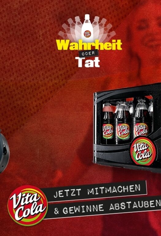 Schmalkalden/Lichtenau, 29. September 2016. „Wahrheit oder Tat“ heißt die große Frage in der neuen Challenge von VITA COLA, die ab dem 4. Oktober 2016 auf www.vita-cola.de startet. Endverbraucher können in dieser Onlineversion des Partyklassikers wählen, ob sie eine Frage kreativ beantworten oder kuriose Aufgaben lösen und davon ein Foto oder Video machen, das sie in die Galerie auf www.vita-cola.de einstellen. Sechs Wochen lang werden dafür unter allen Teilnehmern wöchentlich drei Kästen VITA COLA Pur plus je ein VITA COLA Duffle BackPack verlost. Am Ende gewinnen die beiden originellsten Beiträge hochwertige Bose-Kopfhörer. Die Aktion wird online auf Facebook und Instagram beworben.
