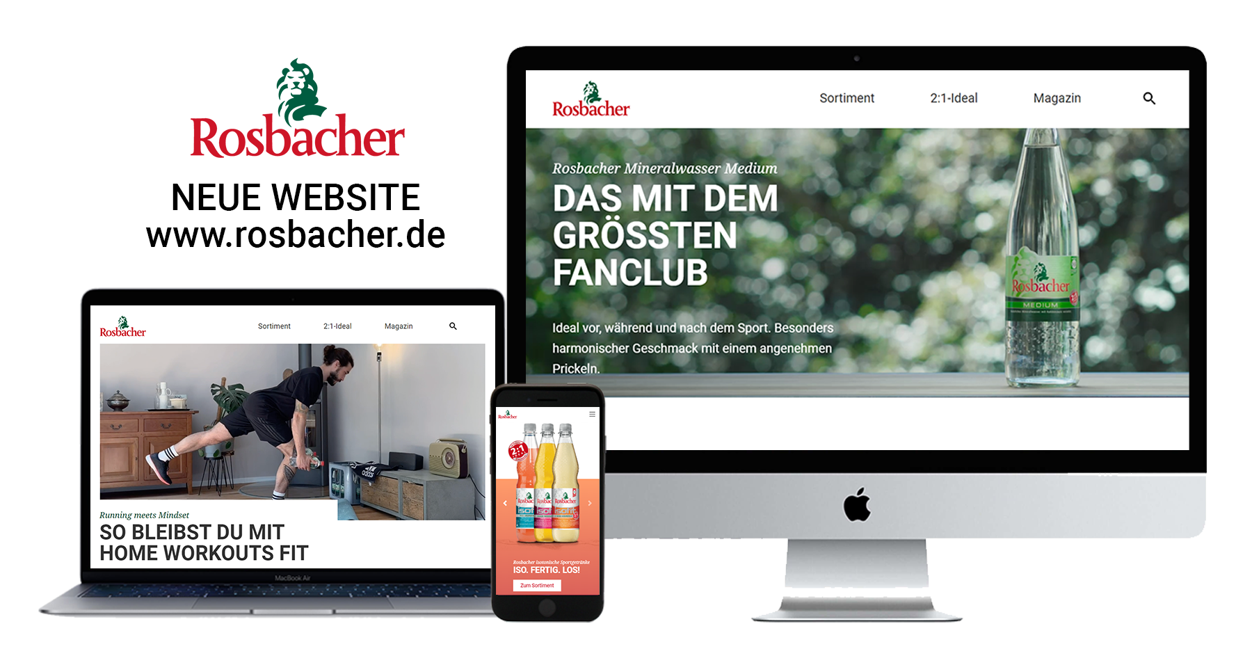 „Unsere neue Digitalagentur, huth+wenzel werbeagentur aus Frankfurt/Main, hat hier eine tolle, neue Präsenz für Rosbacher konzipiert. Die Seite spiegelt die Markenwerte sowohl im Design als auch im Content perfekt wider und zeigt Rosbacher so, wie es ist. Das bringt das Markenimage mit Sicherheit weit voran“, sagt Tim Pötter, Markenmanager Rosbacher. Ausgehend von der Website werden sukzessive alle digitalen Kanäle von Rosbacher auf die neue Digitalstrategie ausgerichtet.