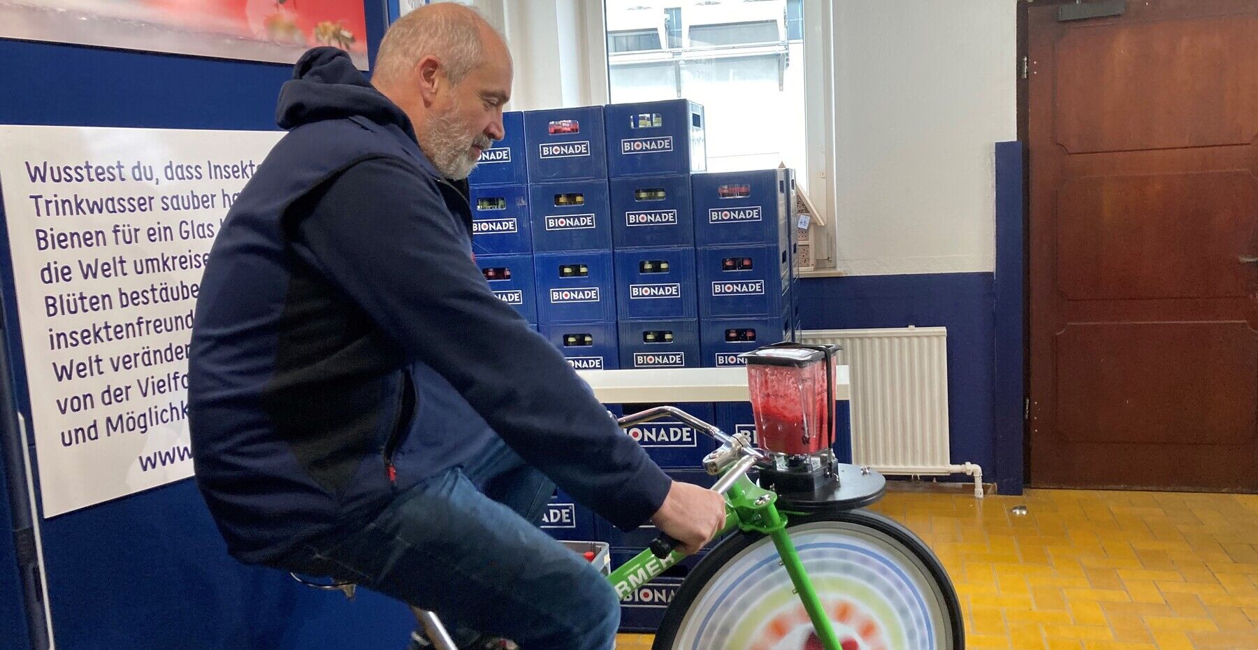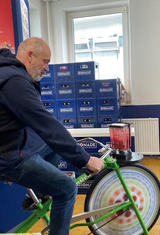 „In unruhigen Zeiten wie diesen bestimmen Negativschlagzeilen die Nachrichten. Wie man auch mit dieser Belastung umgehen kann, hat das Aktivprogramm unserer Kooperationspartner Barmer und BGN gezeigt“, so Betriebsleiter Johannes Zimmer. Auf dem Trainingsplan standen neben Workshops für Herz und Kreislauf auch Bewegungs- und Ernährungstipps. Wer wollte, konnte sich einem Body Check unterziehen. Die Praxis kam keinesfalls zu kurz: Nach Entspannungsübungen konnten die Teilnehmenden mit voller Power auf dem Smoothie-Bike losradeln, mit Antriebsenergie den mit Obst befüllten Mixbecher in Gang setzen und in Windeseile einen fruchtigen Smoothie zubereiten. Lecker!